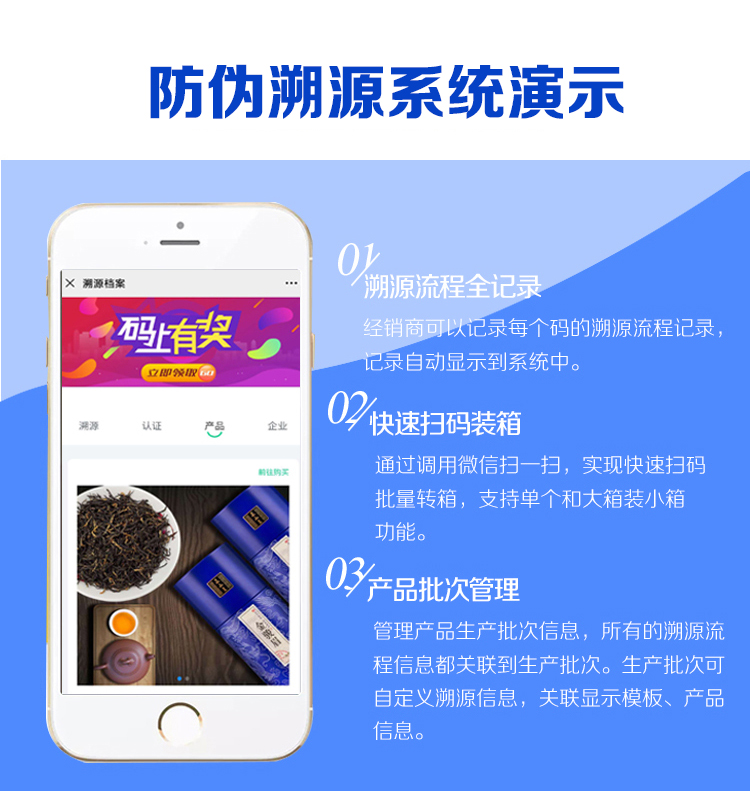 - 定制 防偽追溯溯源系統(tǒng),專注解決防偽溯源問題.利用一物一碼技術(shù).結(jié)合二維碼或條碼實(shí)現(xiàn)產(chǎn)品防偽認(rèn)證查詢.賦予專屬的二維碼,防偽溯源系統(tǒng) 打通品牌與每一位既有消費(fèi)者之間的溝通場景.